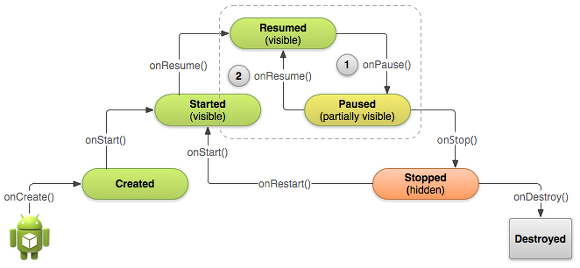 : 사용자가 앱을 시작하고 앱 안에서 앞으로 뒤로 이동하고 다른 앱을 실행하는 등의 행위를 컨트롤하는 것이 바로 Activity이다. 이러한 Activity는 처음 시작할때, 전면에 나와서 사용자의 포커스를 받는 등의 다양한 상태로 변환을 하게 된다. 안드로이드 시스템에서는 이러한 프로세스 중에 라이프사이클과 관련된 함수들을 호출하게 된다. 이러한 함수들은 주로 사용자가 현재 상태에서 다른 상태로 갈 때 이루어지는 것으로 기존에 있는 상태로 다시 돌아갈 때를 대비하거나 다른 상태 중에 있을 때 강제 종료를 하는 등의 예외 상황을 대비하는 등 다양한 처리를 해주어야한다.