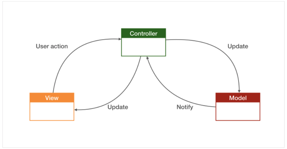 객체를 모델, 뷰, 컨트롤러의 세 가지 역할 중 하나의 역할로 할당합니다.