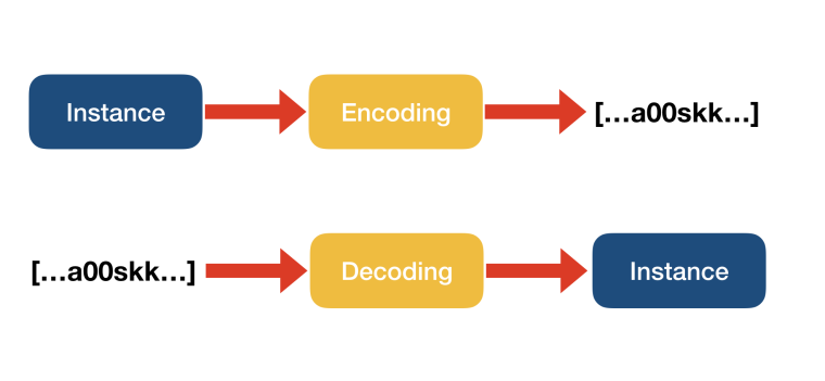 스위프트 4 버전에서는 스위프트의 인스턴스를 다른 데이터 형태로 변환하고 그 반대의 역할을 수행하는 방법을 제공합니다. 스위프트의 인스턴스를 다른 데이터 형태로 변환할 수 있는 기능을 Encodable 프로토콜로 표현하였고, 그 반대의 역할을 할 수 있는 기능을 Decodable로 표현해 두었습니다. 그 둘을 합한 타입을 Codable로 정의해 두었습니다.