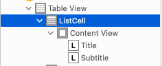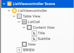 identifier의 값을 "ListCell"'로 작성 - ( ListViewcontroller.swift 에서 구분자로 사용 )