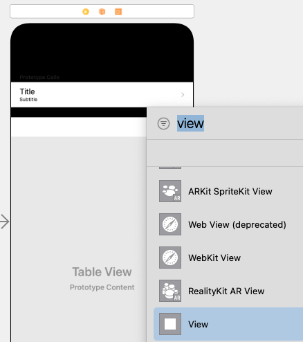 목록 하단 부분에 빈부분을 채워주기위해 스토리보드에서 하단에 View를 끌어다가 넣어준다.