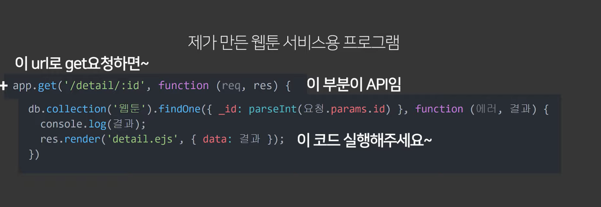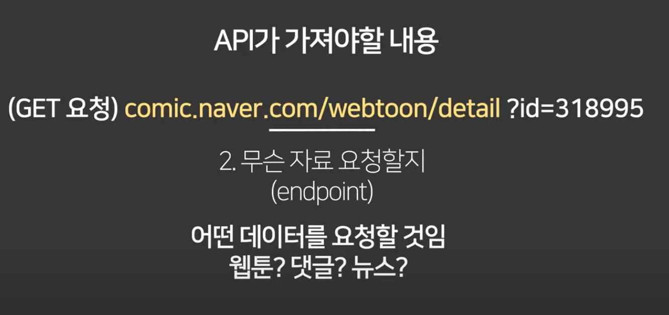 - API는 서버와 데이터베이스에 대한 출입구 역할을 한다.