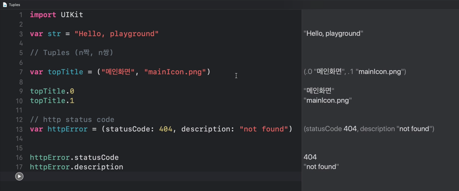 반면에 튜플은 요소들의 개수와 내용을 변경할수 없다. 요소 각각의 인덱스는 중요한 의미를 가진다.