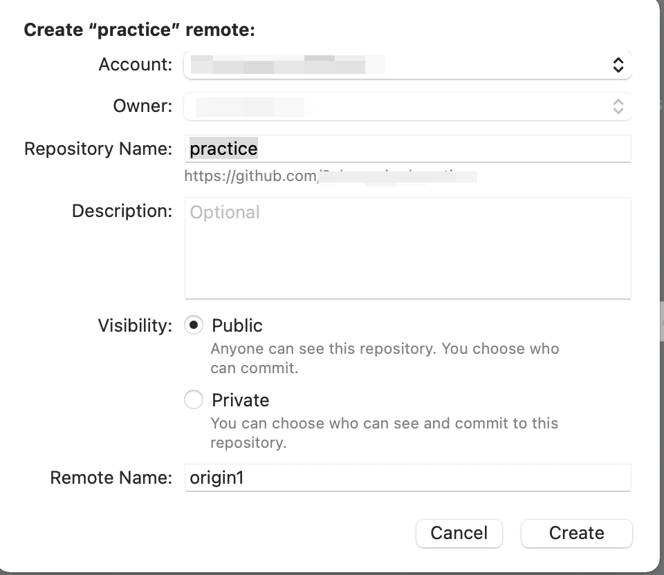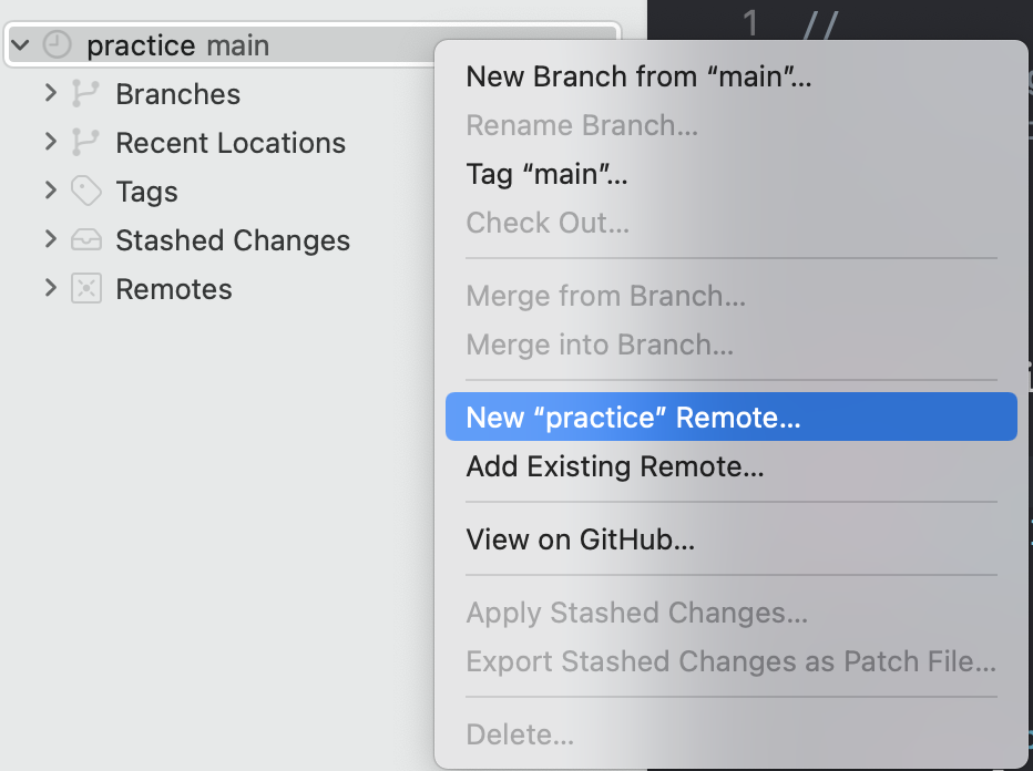 왼쪽 마우스 누르고 파란색부분 선택하면, 하단창 뜨고, 깃허브에 새로운 프로젝트를 만들수 있다.