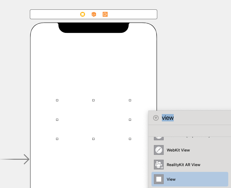 메인스토리보드에서 뷰컨트롤러에 뷰를 추가한다.