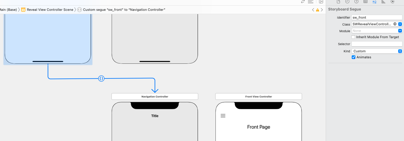 FrontViewController클래스로 바버튼을 드래그 하여 아울렛변수 sideBarButton을 정의한다.