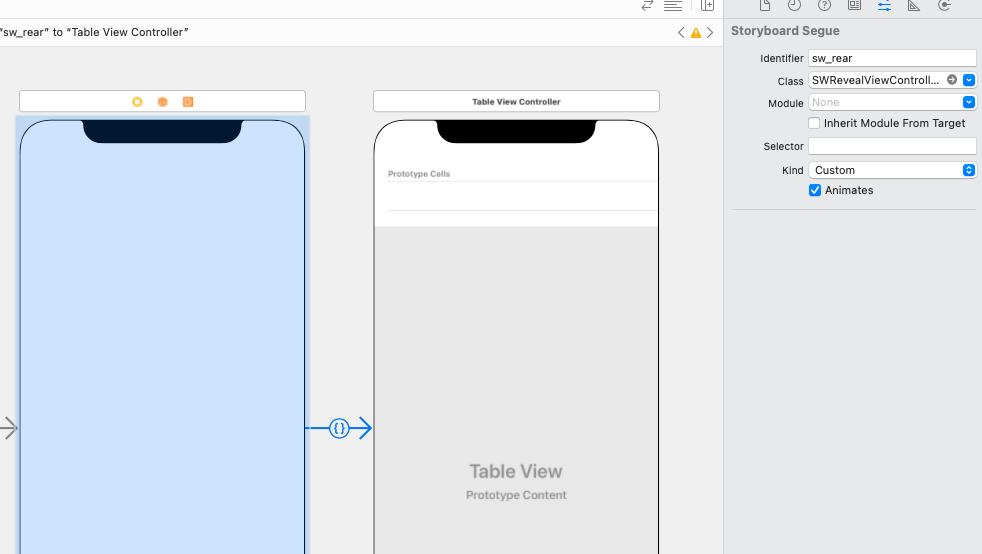 메인스토리보드로 가서 뷰컨트롤러와 SWRevealViewController 클래스를 연결한다.( 메인)