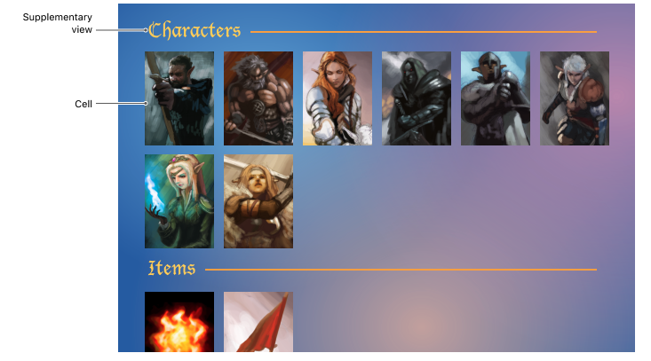 - 셀의 레이아웃은 컬렉션뷰의 레이아웃 객체에 의해 관리됩니다.