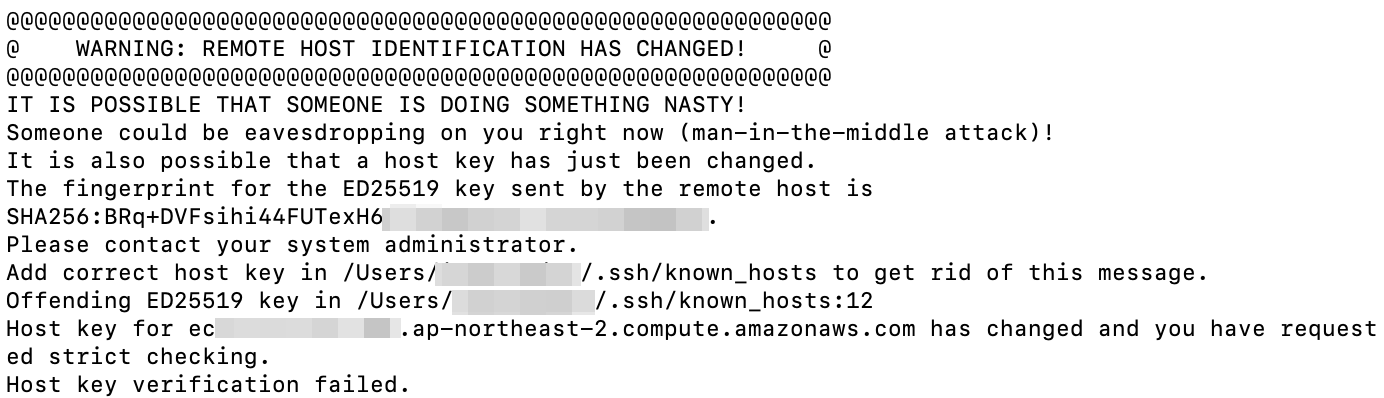 - 접속을 시도하려는 내쪽(Client)에서 해당 서버에 대한 키를 제거한 후, 다시 접속을 시도하면 된다.