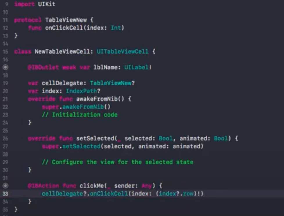 프로토콜을 정의한다. onClickCell(index: Int)