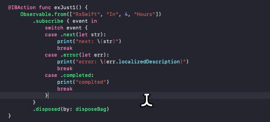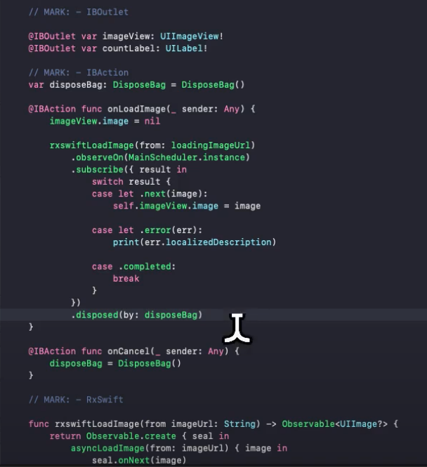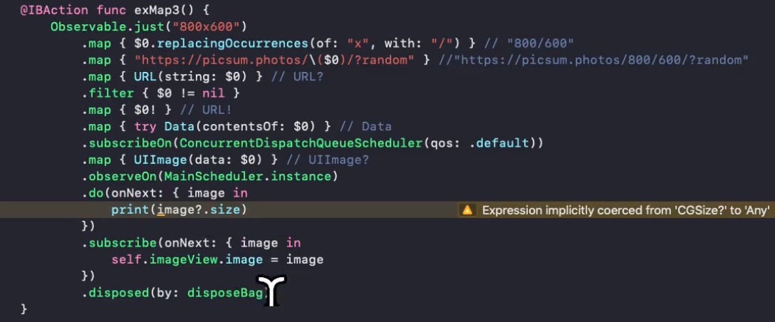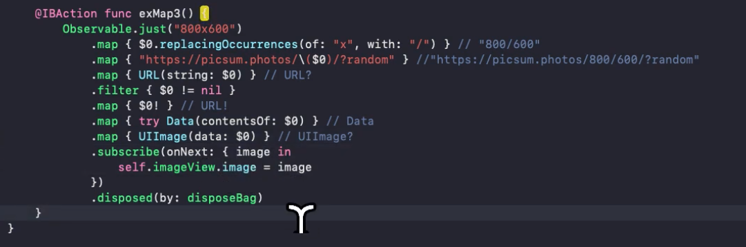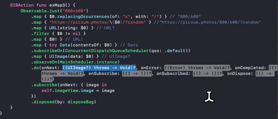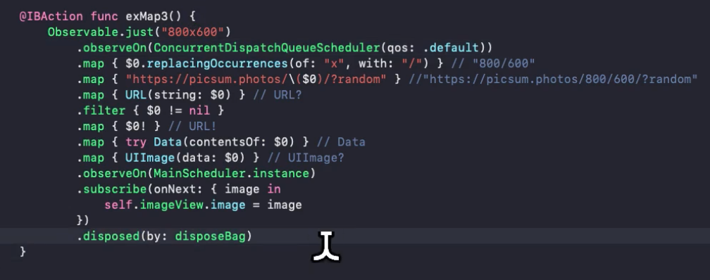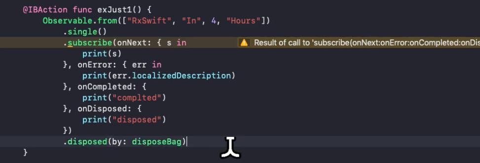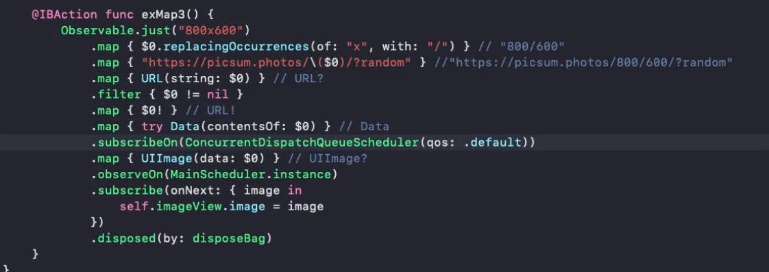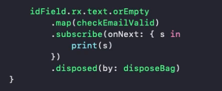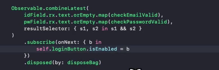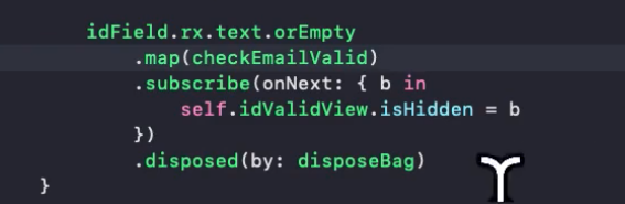 변수를 생성하지 않고, 밑에다가 바로 .disposed(by: disposeBag)을 바로 해줌