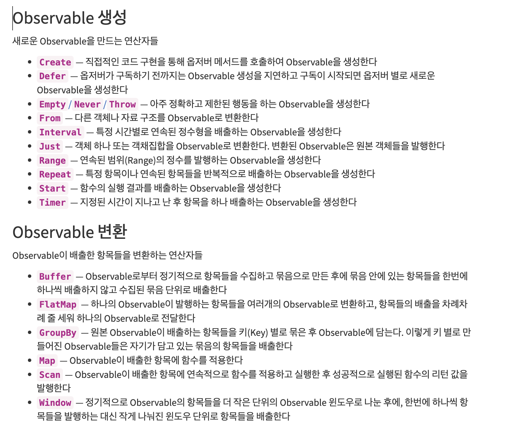 https://reactivex.io/documentation/ko/operators.html ⭐️⭐️⭐️⭐️⭐️ 필요할때 찾아쓰기!!!