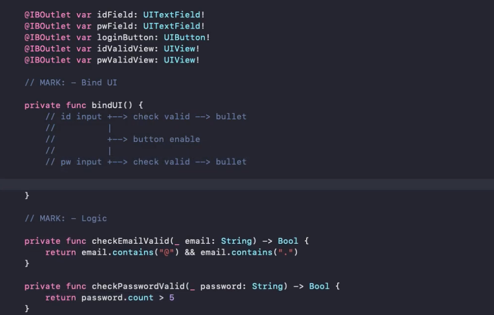 b(불린)값이 true이면 self.idValidView.isHidden = b (빨간점 사라짐)