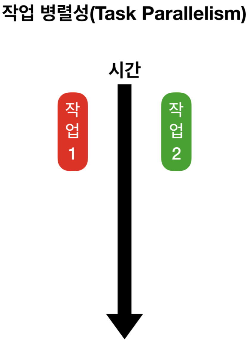 - 작업 병렬성 : 서로 다른 작업을 병렬 처리하는 것을 말합니다.