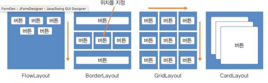 컨테이너 안에 추가되는 컴포넌트의 위치와 크기를 자동적으로 결정한다.