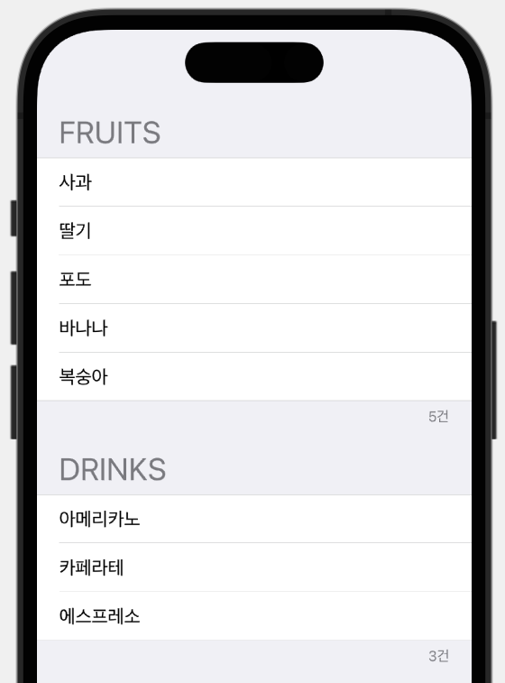 footer: HStack { Spacer(); Text("\(data[index].count)건")}