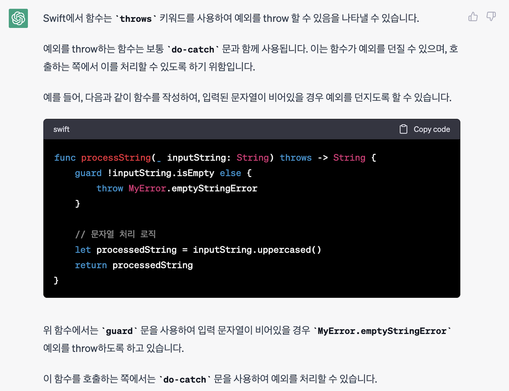 [Swift] 기초 문법 - 예외처리 (throws, do-catch, try)