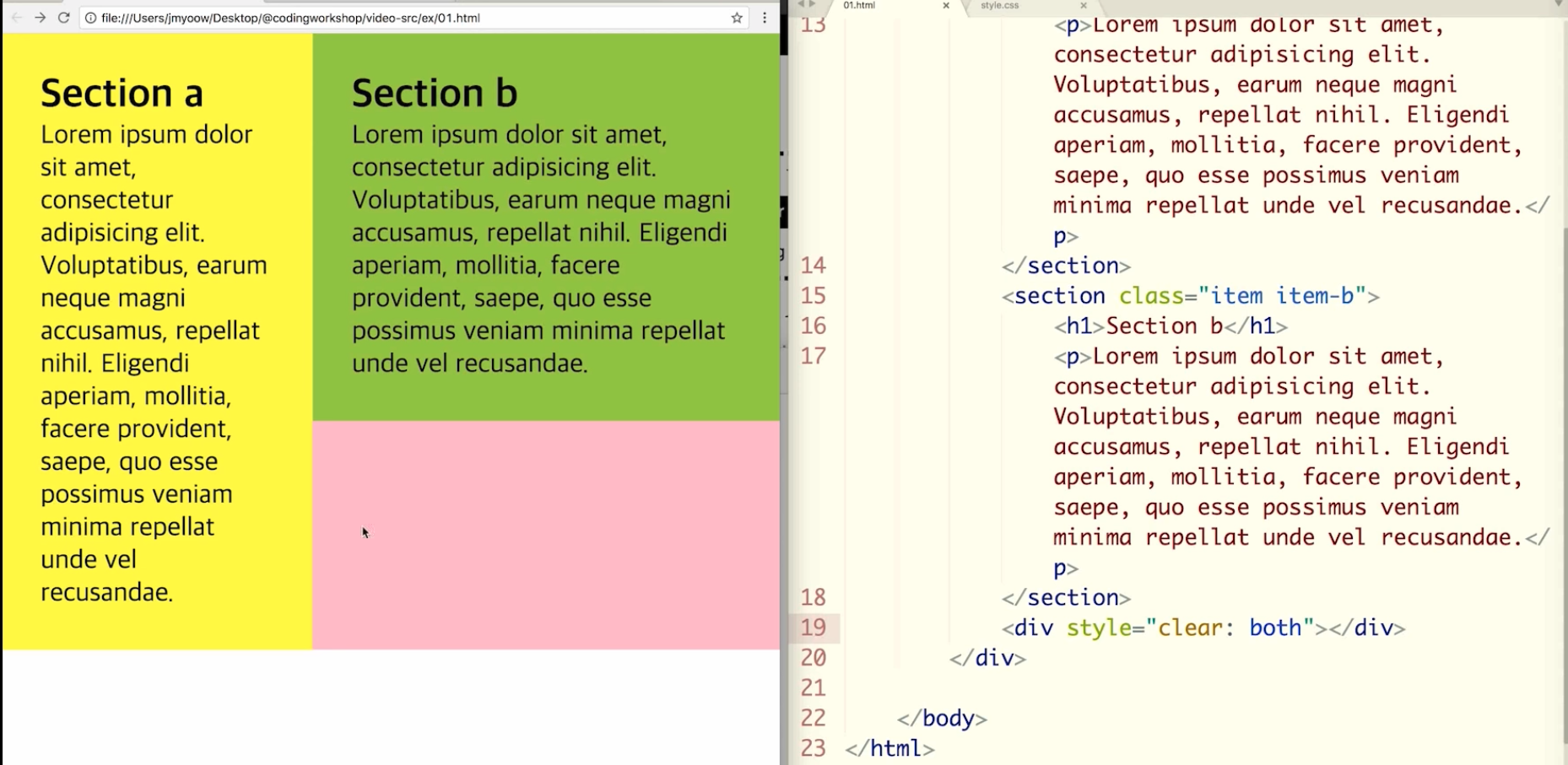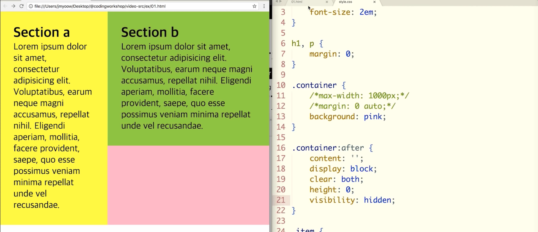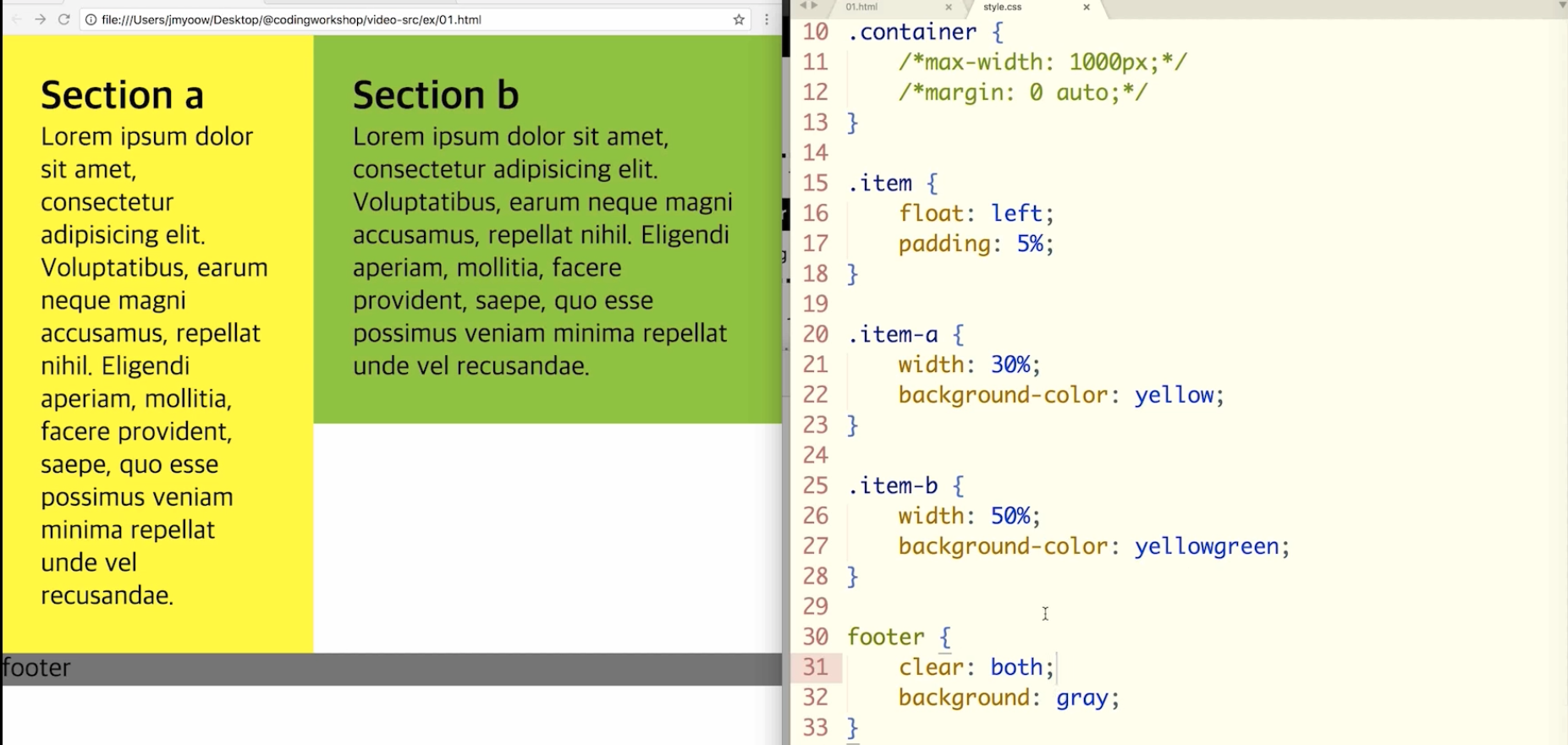 youtu.be/Zny5Vxqk6Mk?t=1583 float:left; // 얘를 왼쪽에 두 고 감싸고 돈다.