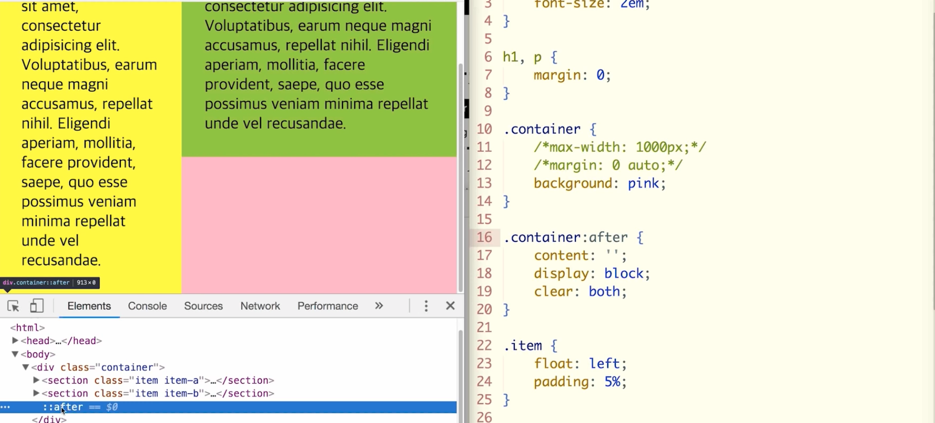 컨테이너가 끝나기 직전에 float 클리어 해준다.