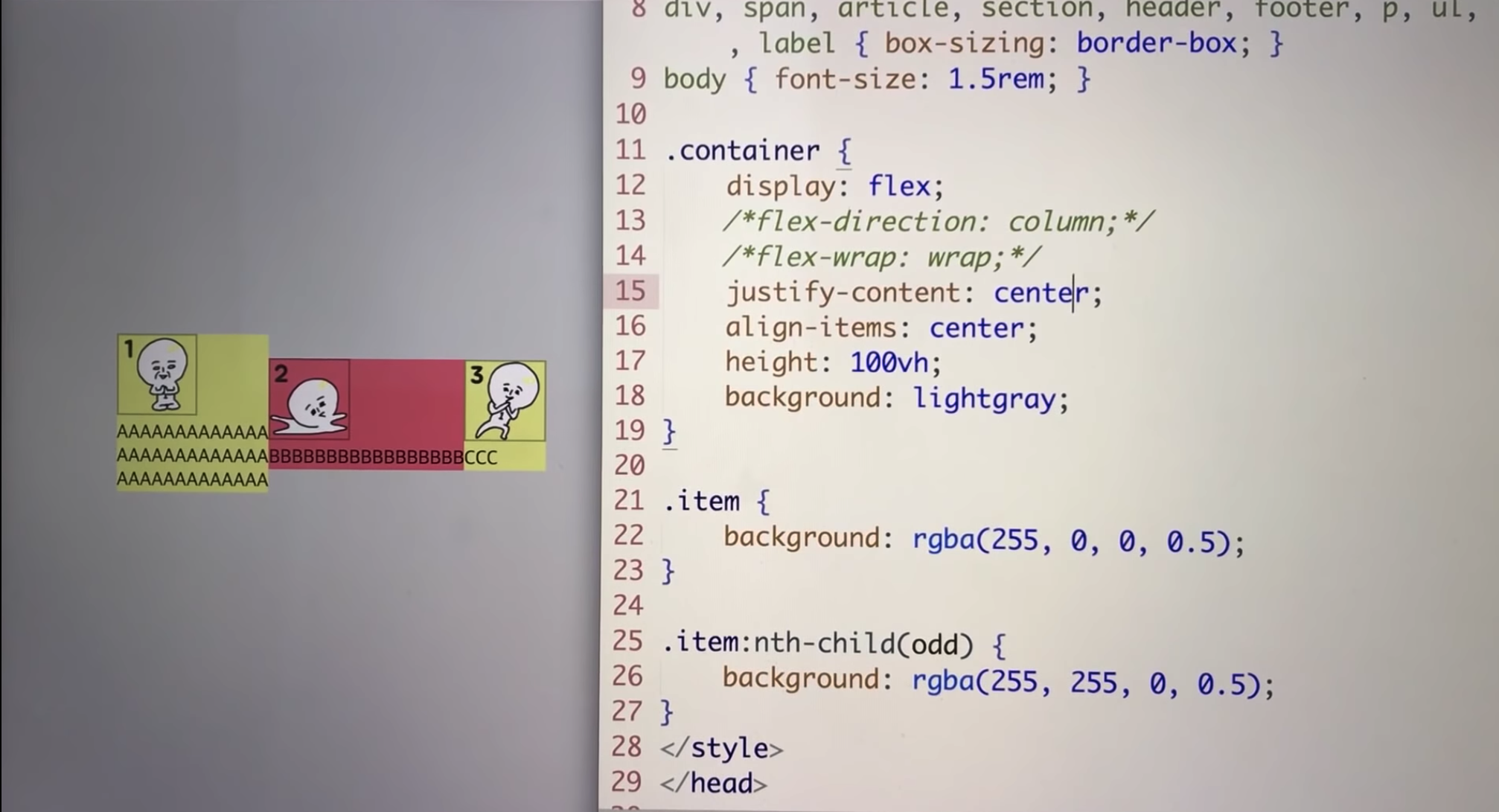 flex는 박스 부모에 적용하는 것 - 안에 있는 아이템들에게 적용됨